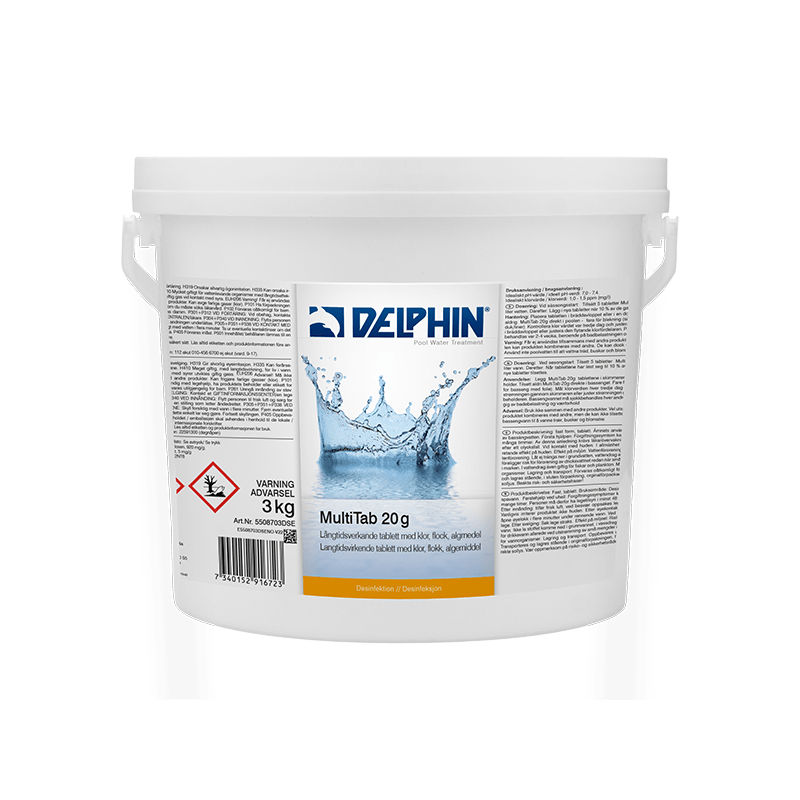 I regel används 5-8 Delphin klortabletter i veckan för en vattenmängd på 1000-1200 liter. Men se till att kontrollera din veckodosering av klortabletter för spabad så att inte för mycket klor används. Överklorering är dåligt för vattnet och kan ge kroppsliga besvär. Ett för högt pH-värde kan förorsaka hud- och ögonbesvär, kalkutfällningar samt att desinfektionsmedels verkan kan reduceras. Ett för lågt pH-värde kan orsaka irritationer i slemhinnor och ögon samt bidra till korrosion på metalliska delar.
